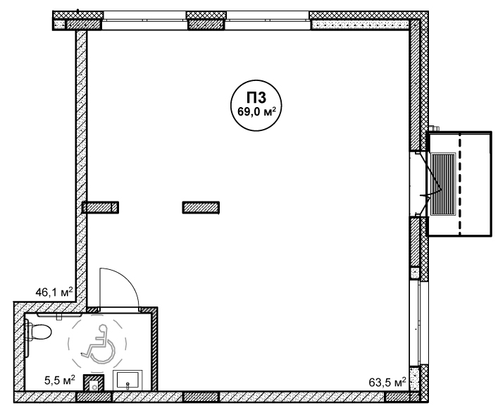 Площадь 69 м²