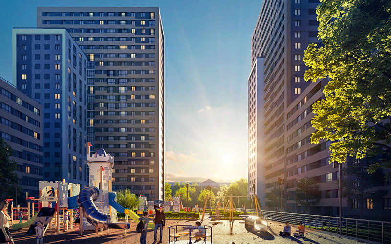 Особая гордость будущих жильцов! Здесь в окнах отражается солнце, а вечером - потрясающий закат. Полноправными владельцами таких видов станут жильцы верхних этажей дома.